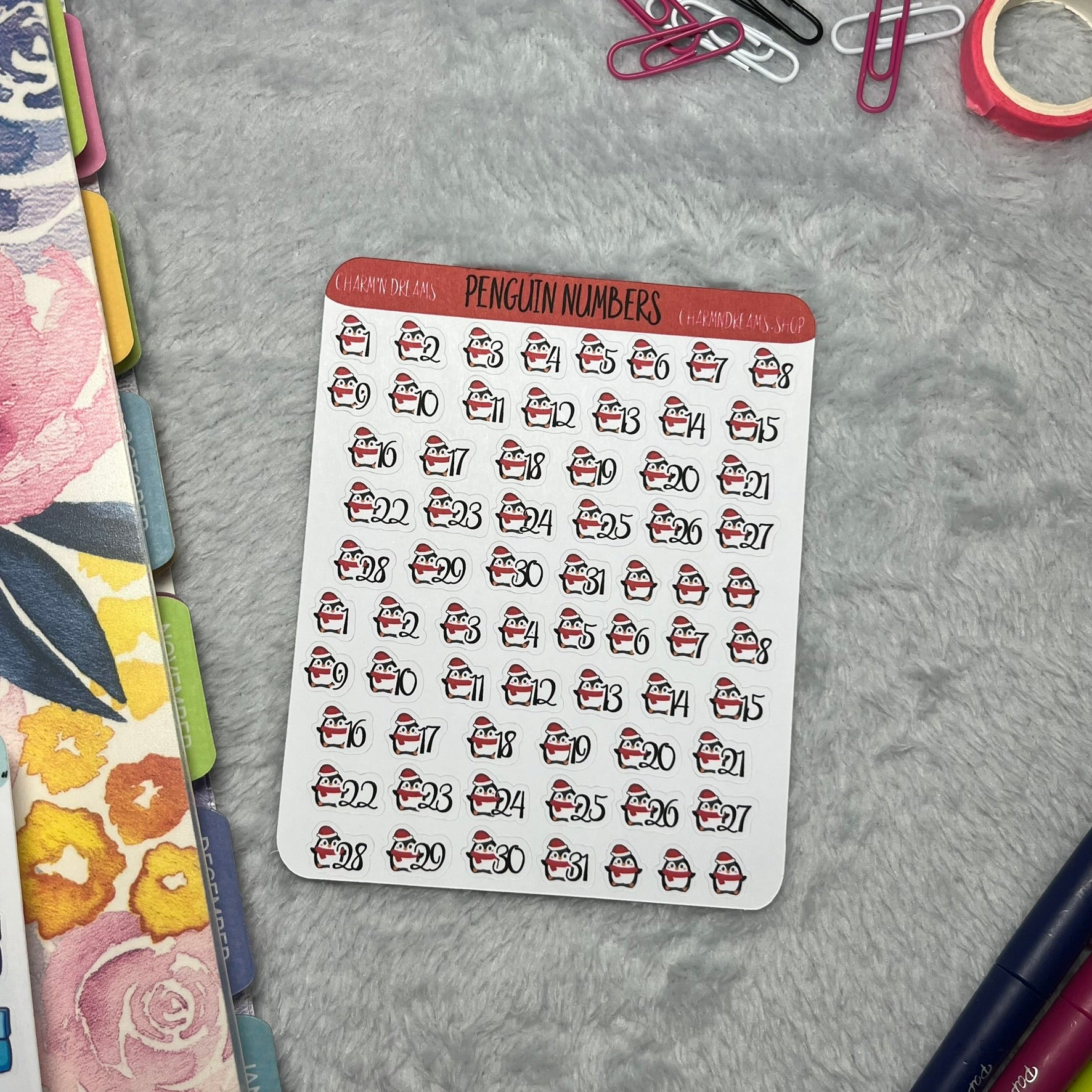 Tiny Winter Penguin Number Planner Sticker Sheet