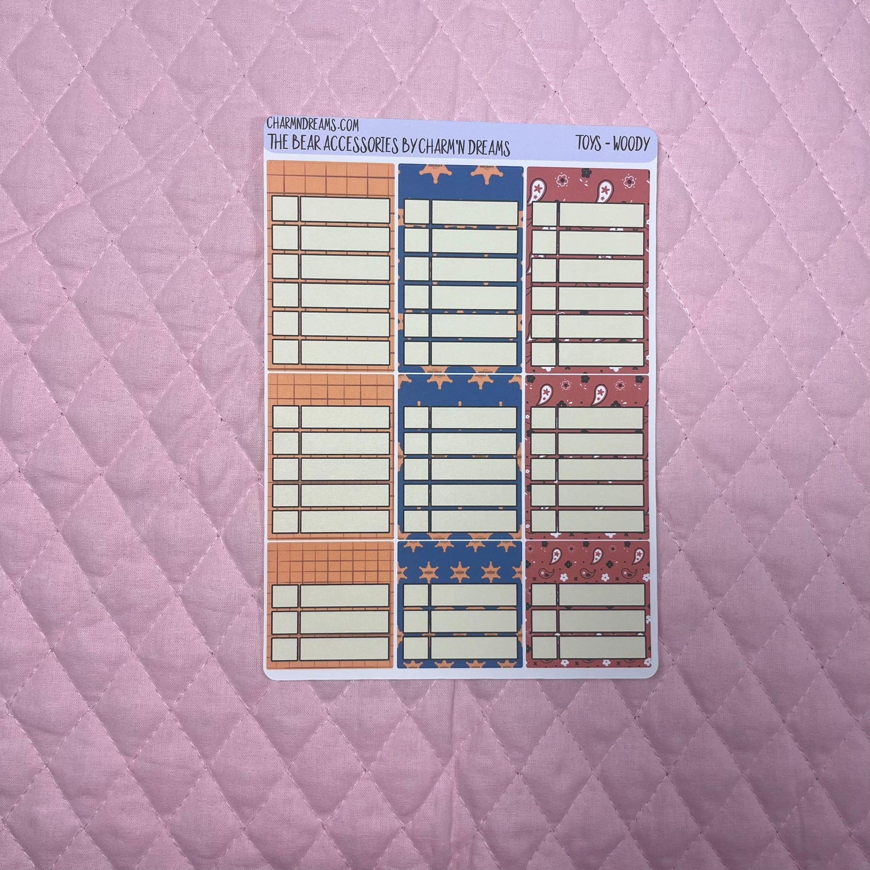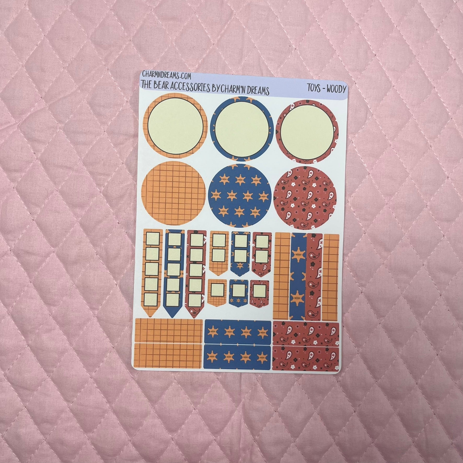 Add some playful fun to your planner with our Toys Woody Planner Sticker Kit. This 6 sheet kit, inspired by Toy Story,this is 1 kit of 3 unique designs to keep your planner organized and whimsical. Perfect for kids and adults alike.