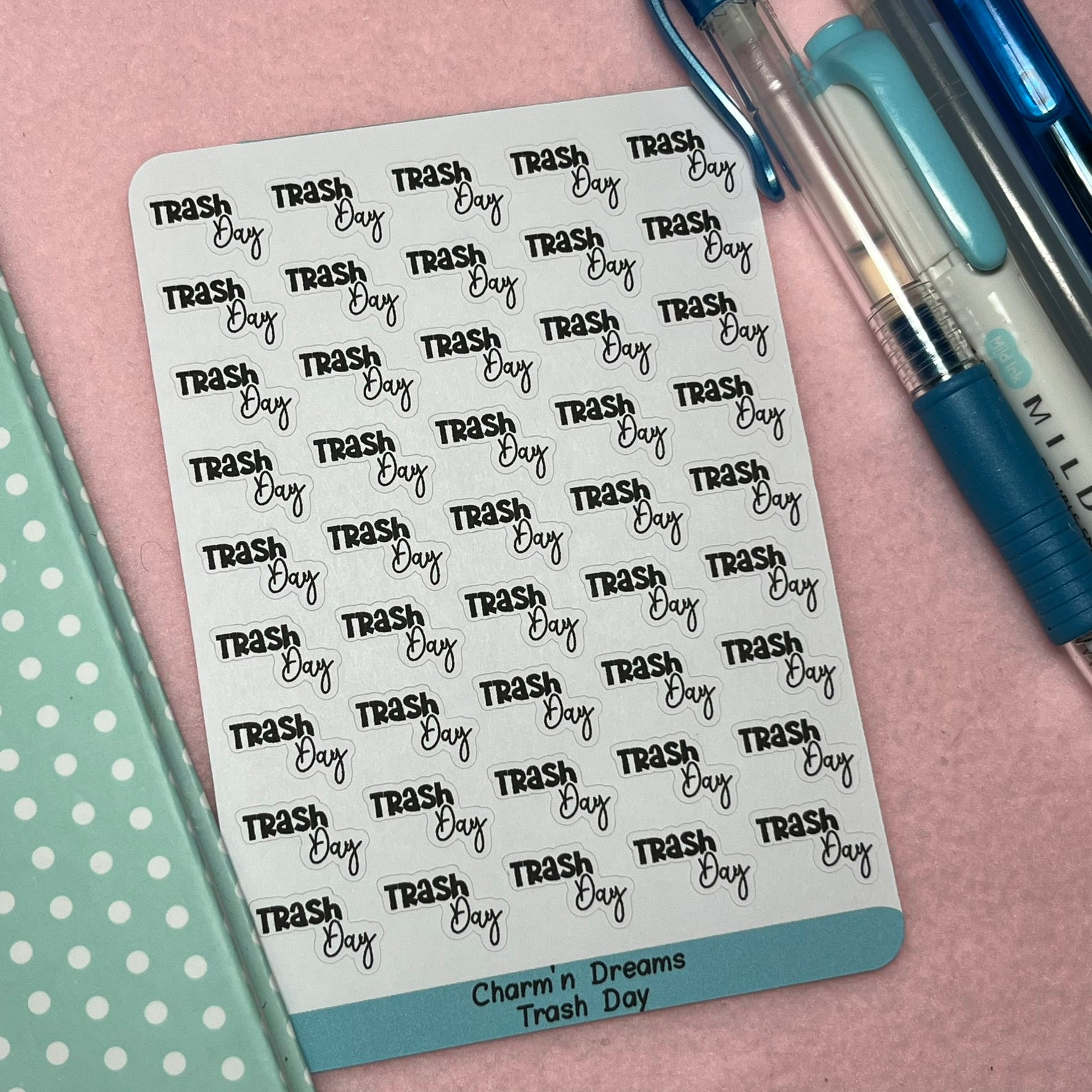 Stay organized with these functional planner stickers. Made with permanent matte sticker paper, these stickers will help you keep track of trash days and stay on top of your schedule. Simplify your life with these convenient and reliable stickers.