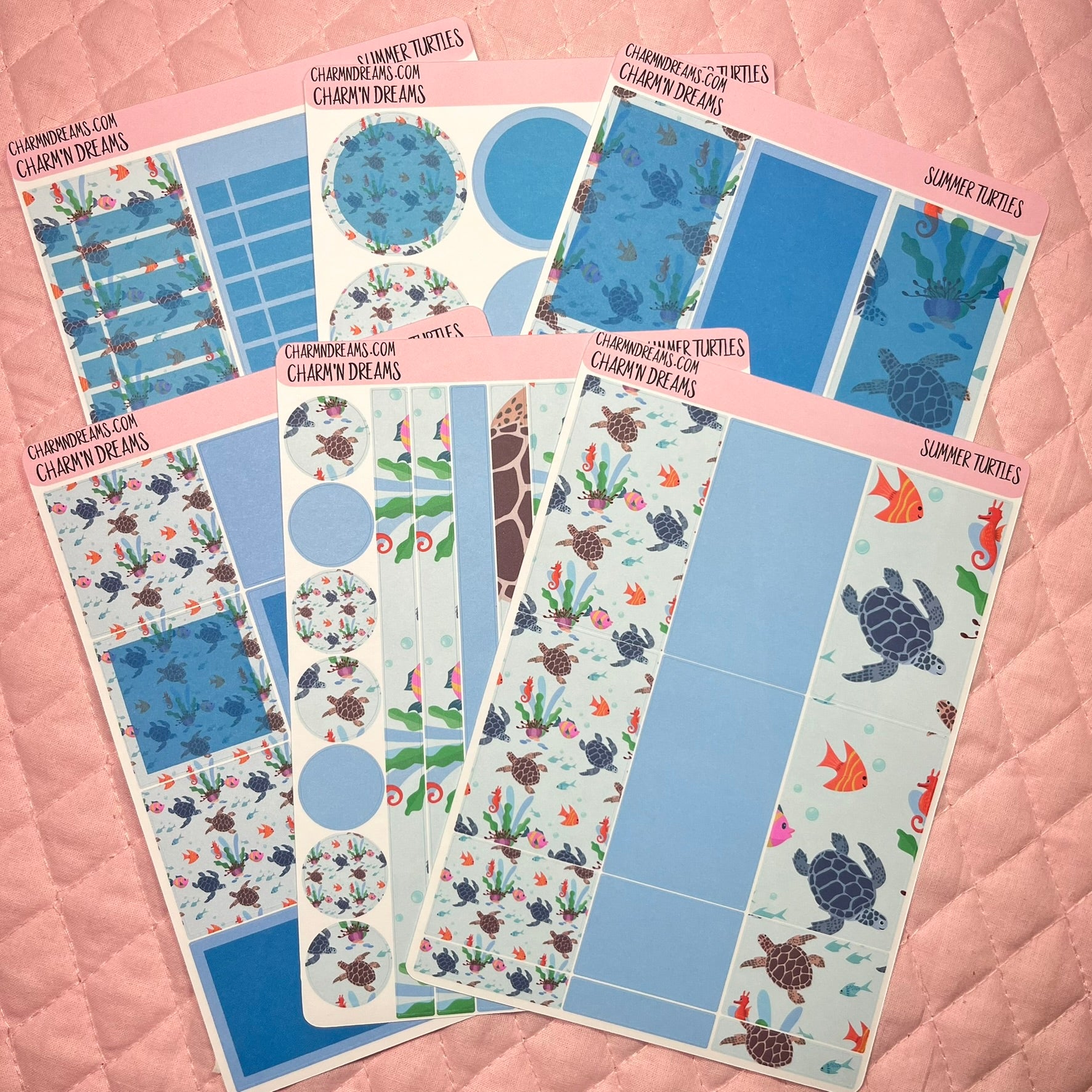 Shell-ebrate your summer plans with our totally turtle-rific Planner Sticker Kit! These adorable turtle buddies swim, sunbathe, and surf across your planner pages, bringing beachy vibes to your schedule. Perfect for marking vacation days, pool parties, or any occasion that needs a splash of fun! Let these little green friends crawl into your heart while keeping your summer organized—slow and steady wins the planning race!