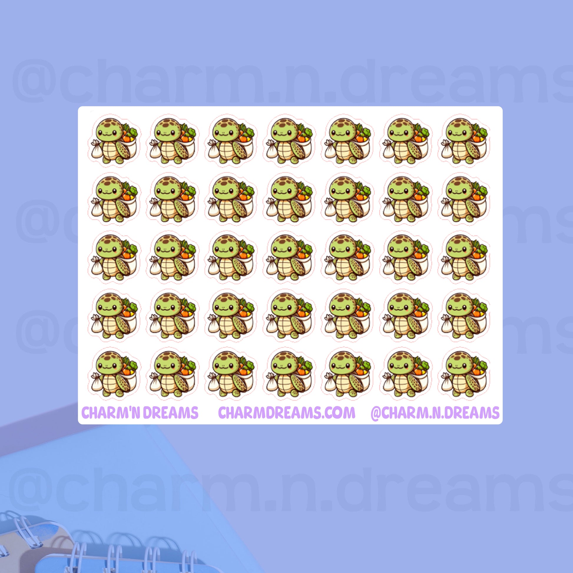 Get organized in a fun and quirky way with the Turtley Sack of Veggies/ Meal Prep stickers! These cute stickers, designed with a turtle hauling its veggies, are perfect for planning your day and staying on top of your tasks. Use them as a fun way to journal and keep track of your memories. Made with permanent matte sticker paper, each sheet contains 35 stickers, roughly 0.5 inches high.
