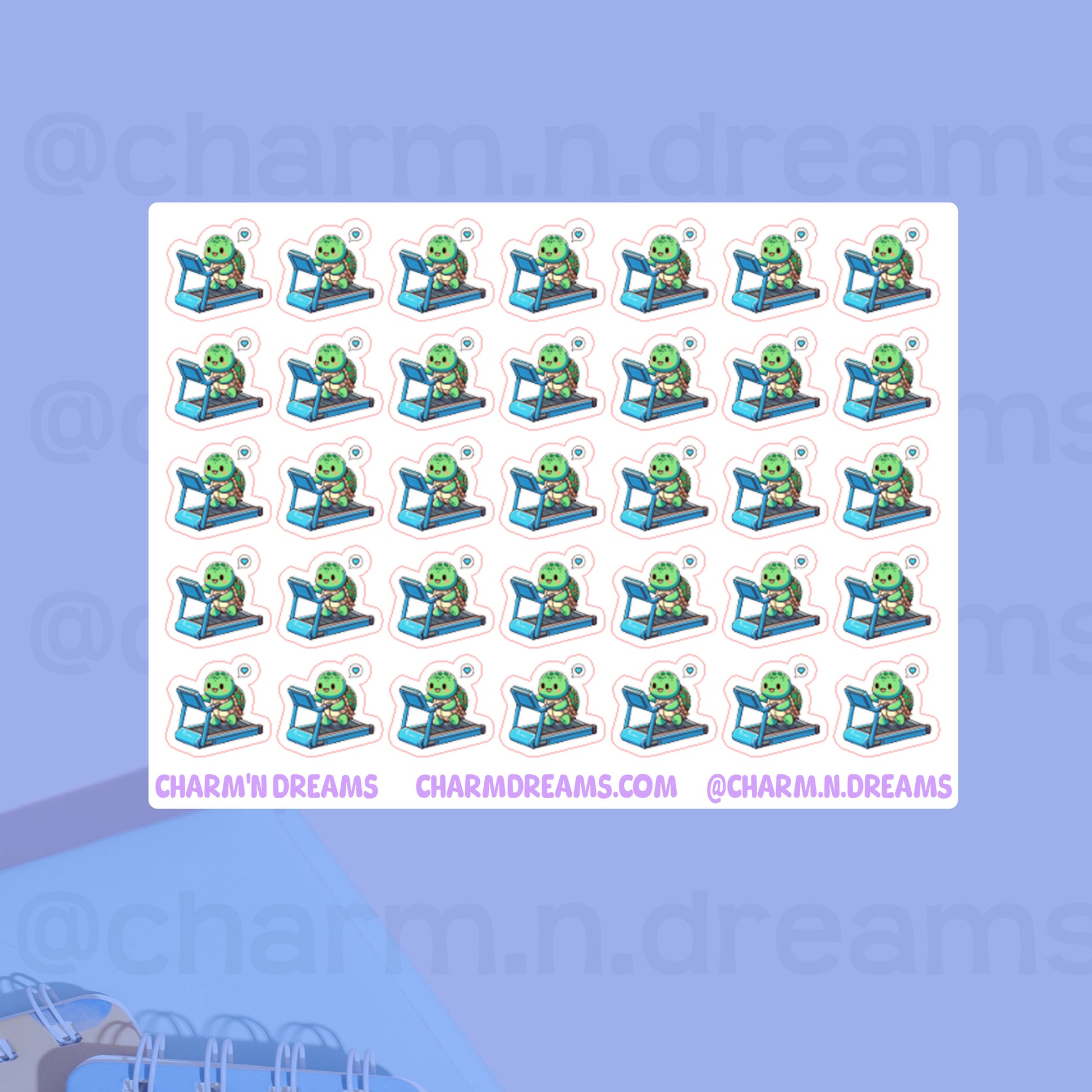 Introducing Turtley Treadmill - the cutest way to stay organized and increase productivity! These permanent matte stickers feature a determined turtle doing its cardio on a treadmill. With 35 stickers per sheet, they're the perfect size to mark tasks and journal as a memory keeper throughout the day. Get your daily dose of motivation and cuteness all in one!
