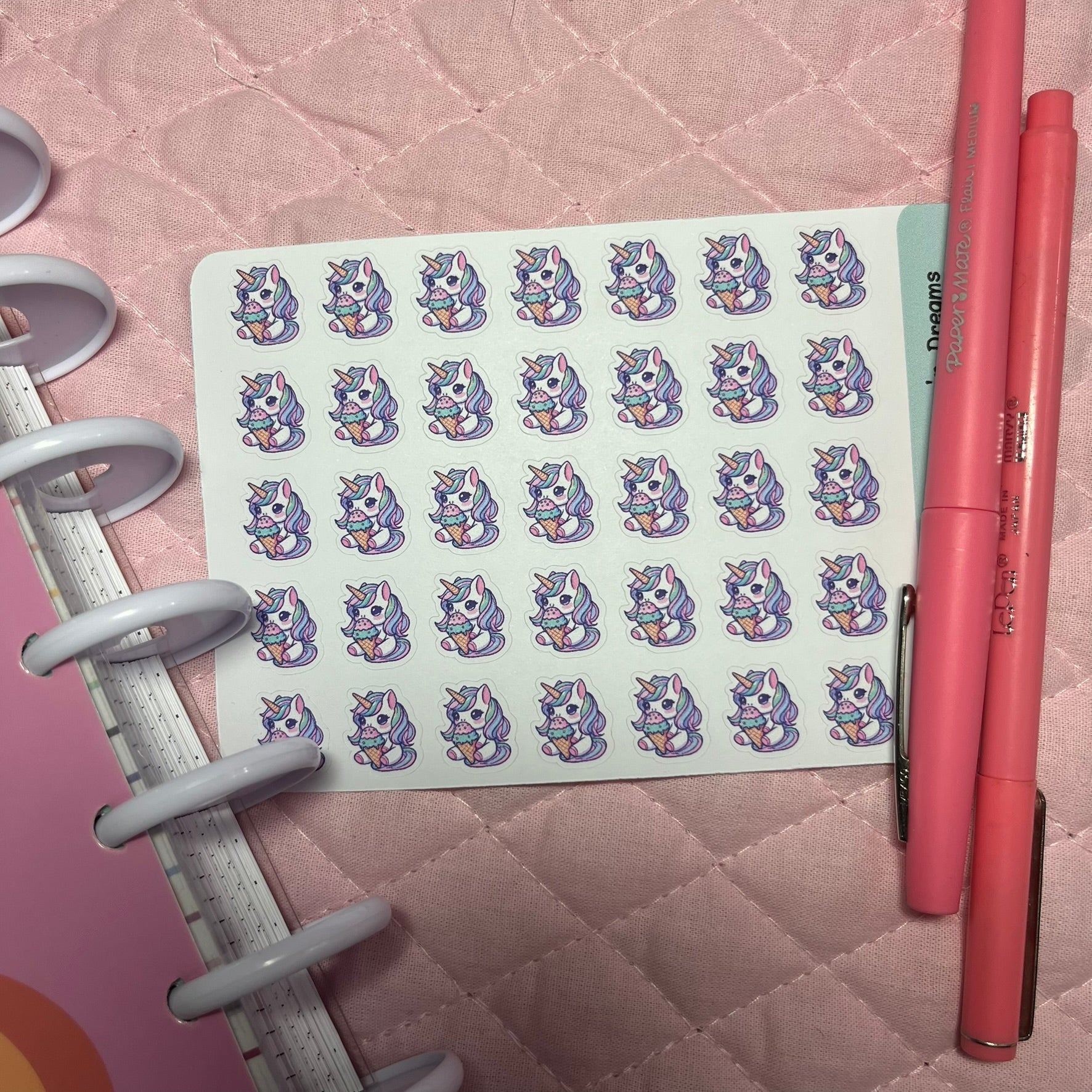Pastel Unicorn Ice Cream Icon Planner Stickers