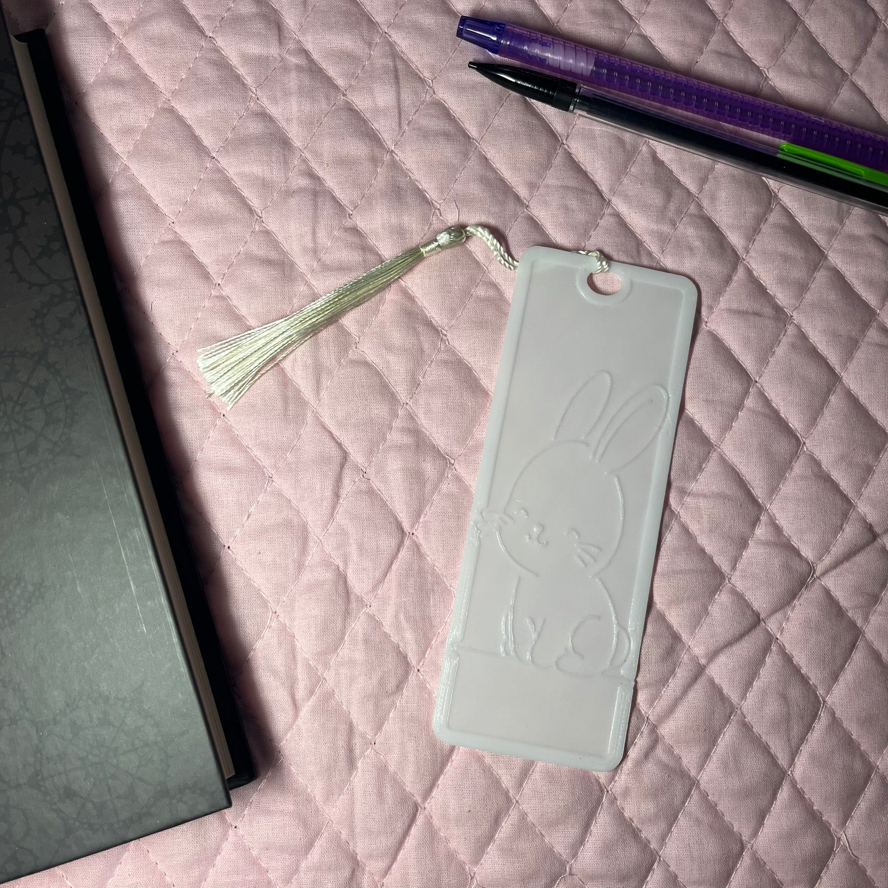 A White Bunny Bookmark 3d printed (PETG) Bookmark! The 3d printed file is created and printed in house for a fun and meaningful product.