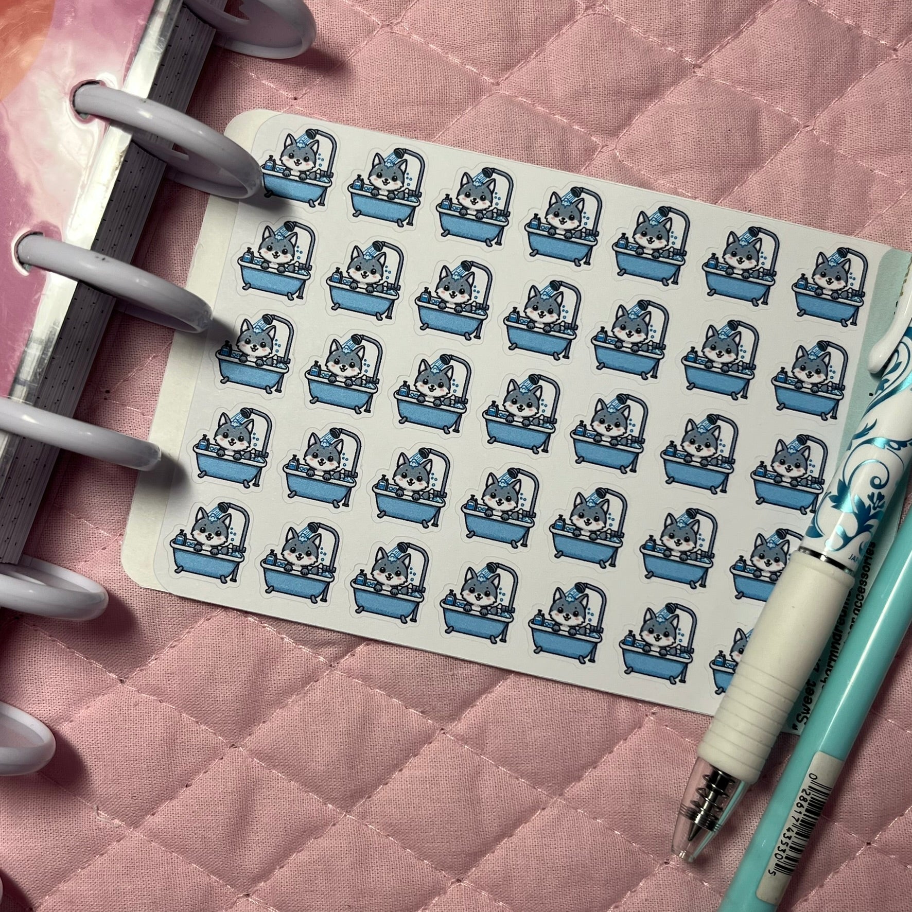 Organize your planner, journal, or bullet journal with our Wolf Bath Time Icon Planner Stickers! Made with permanent matte sticker paper, these stickers will add a touch of whimsy to your daily routine. Stay on track and make planning more fun with these adorable icons.