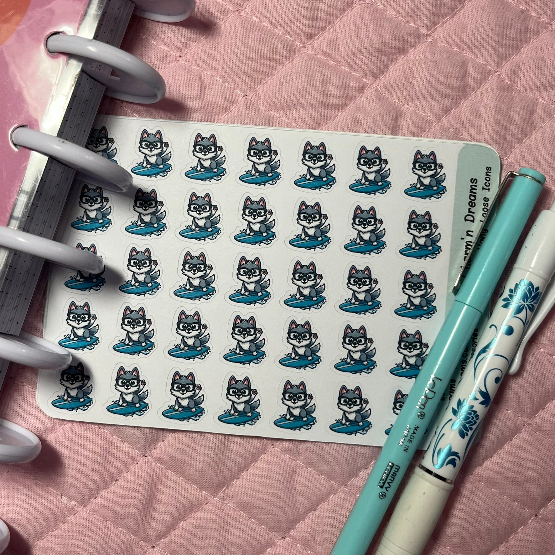 Wolf hang Loose/ Surfing Icon Planner Stickers