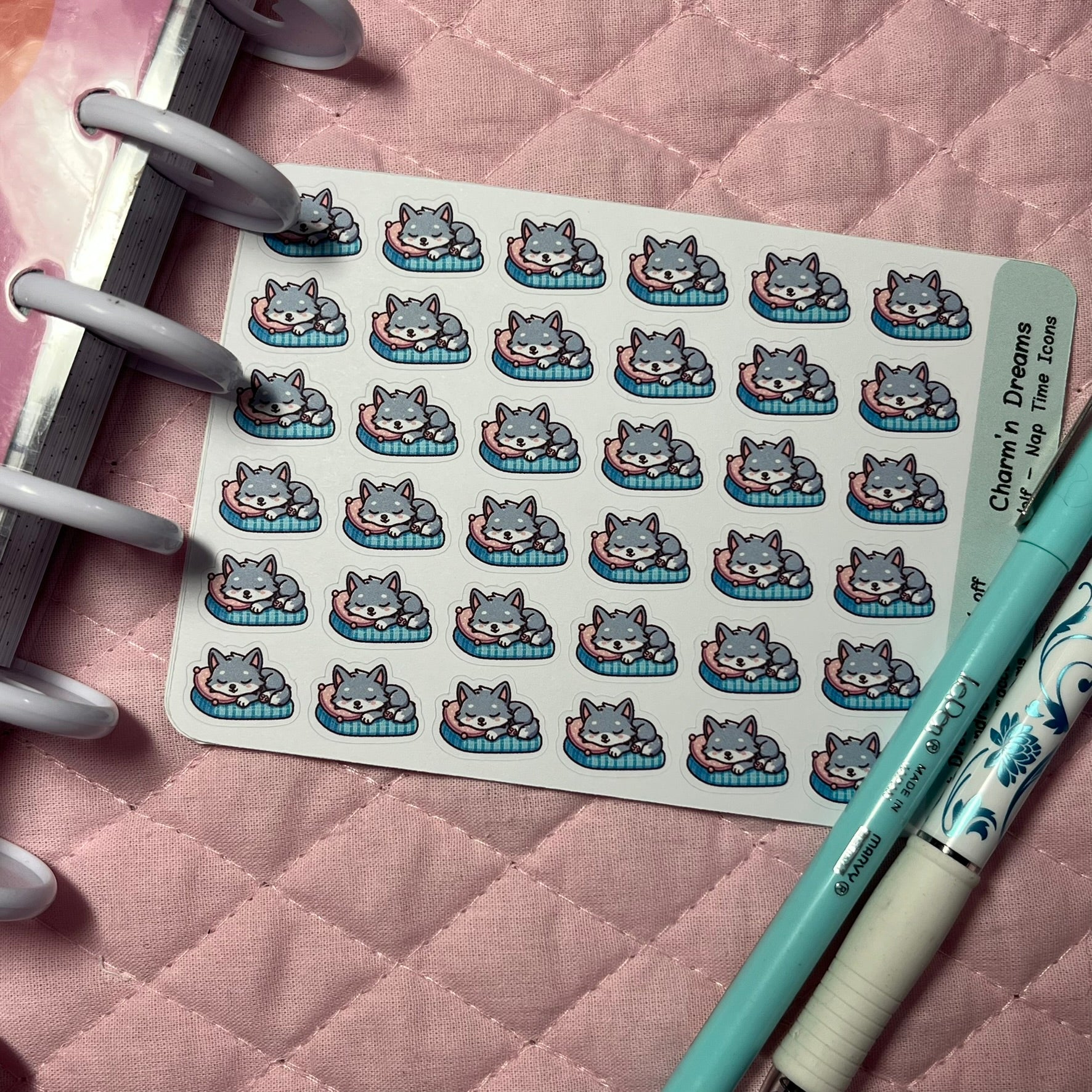 Elevate your planning game with our Wolf Nap Time Icon Planner Stickers! Made with permanent matte sticker paper, these stickers are perfect for adding a playful touch to your planner, journal, or bullet journal. Stay organized and on track while expressing your love for our cute wolf with these stickers.