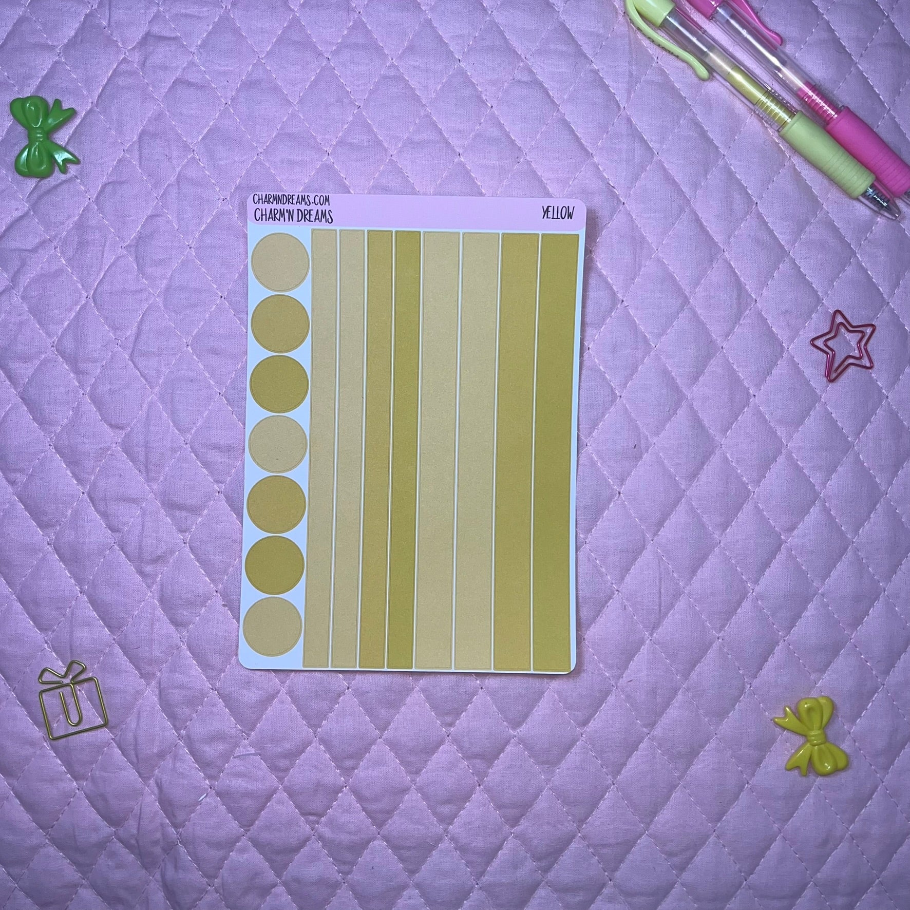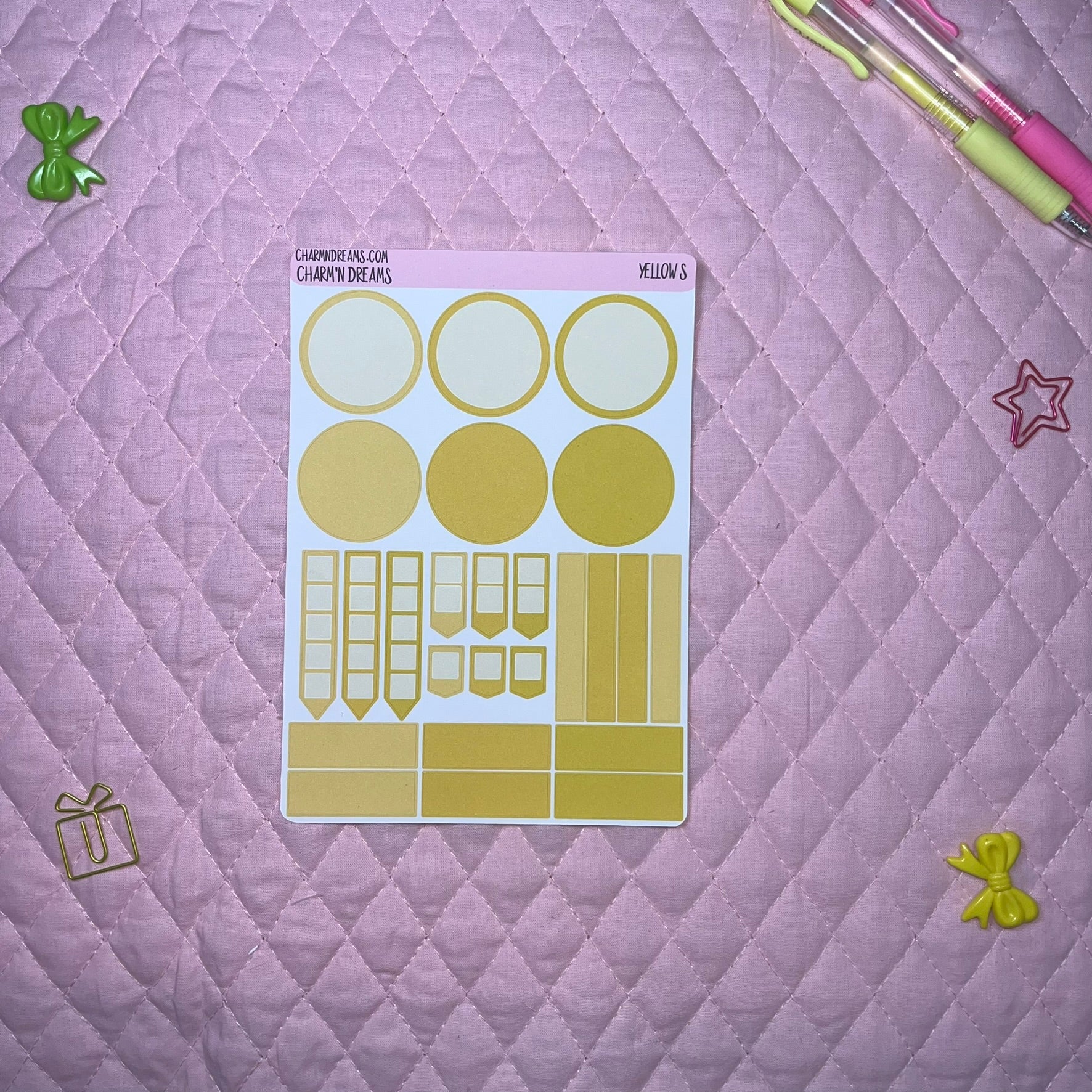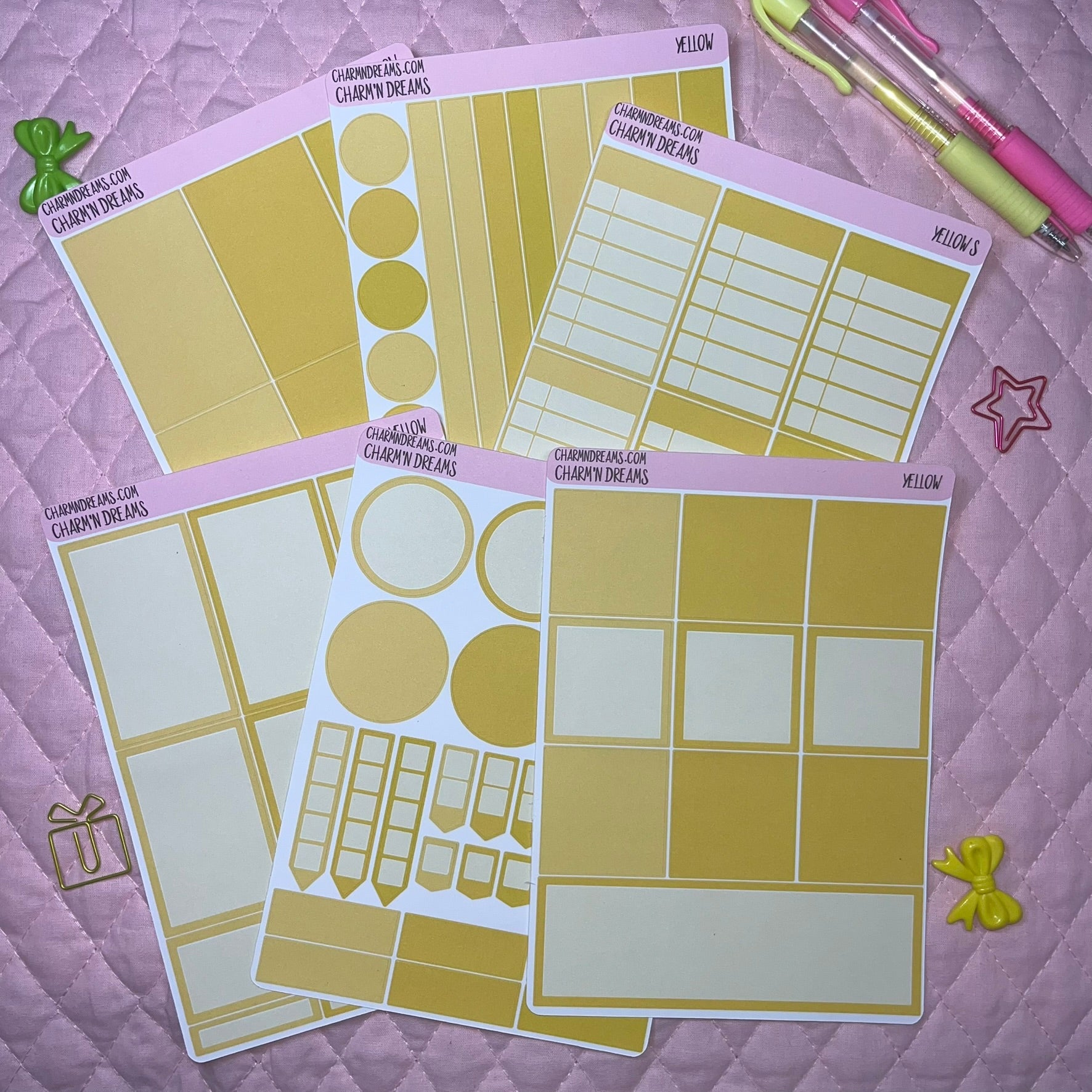 Our Yellow Planner Sticker Kit is the perfect stand alone or accent sticker kit! Mix and Match your favorite colors or dedicate solid colors to color code your projects or lifestyle. Perfect for journaling and bujo lovers.